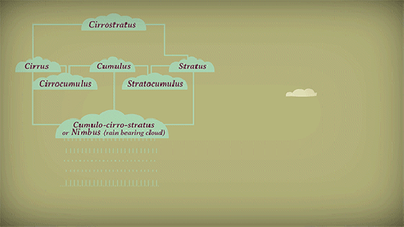 Todos estos materiales provienen de la lección de Ted Ed de Richard Hamblyn: «How Did Clouds Get Their Names?» inspirada en el artículo de Brain Pickings «The Invention of Clouds: Goethe’s Poems for the Skies and His Heartfelt Homage to the Young Scientist Who Classified Clouds» a través de TED-Ed Blog (GIFs) «The science of clouds (in TED-Ed GIFs)«