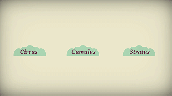 Howard observó que las nubes tenían muchas formas individuales, pero que éstas provenían de unas pocas formas básicas. De hecho, todas las nubes pertenecen a uno de estos tres tipos: