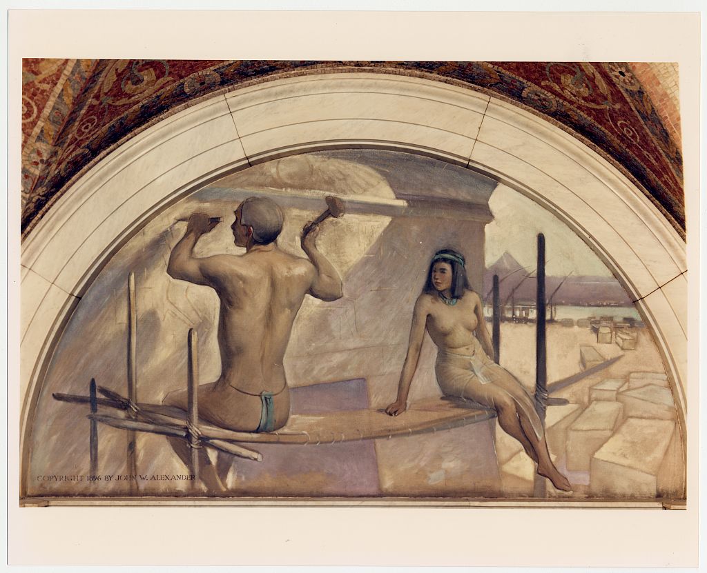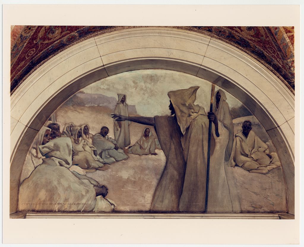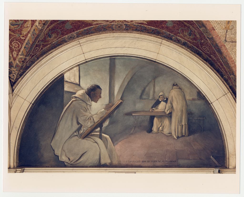 Este señor de la imagen destacada es Johannes Gutemberg (dicho rápido, el inventor de la imprenta). El cuadro es de John White Alexander (1856-1915) y se titula «La Prensa de Impresión» dentro del ciclo de pinturas del artista: «La Evolución del Libro». La obra se encuentra en la Biblioteca del Congreso (Edificio Jefferson) en Washington D.C.