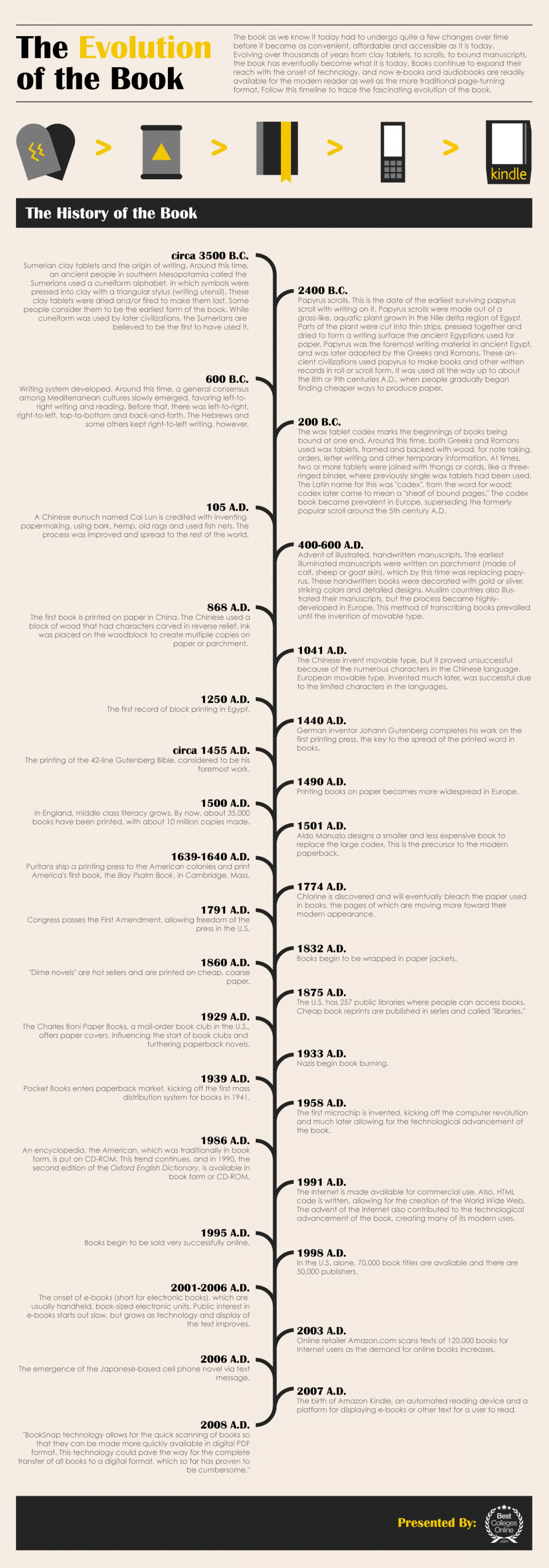 En esta infografía, podremos aprender de un modo más detallado todos los hitos que se pasaron hasta llegar a nuestros libros actuales.