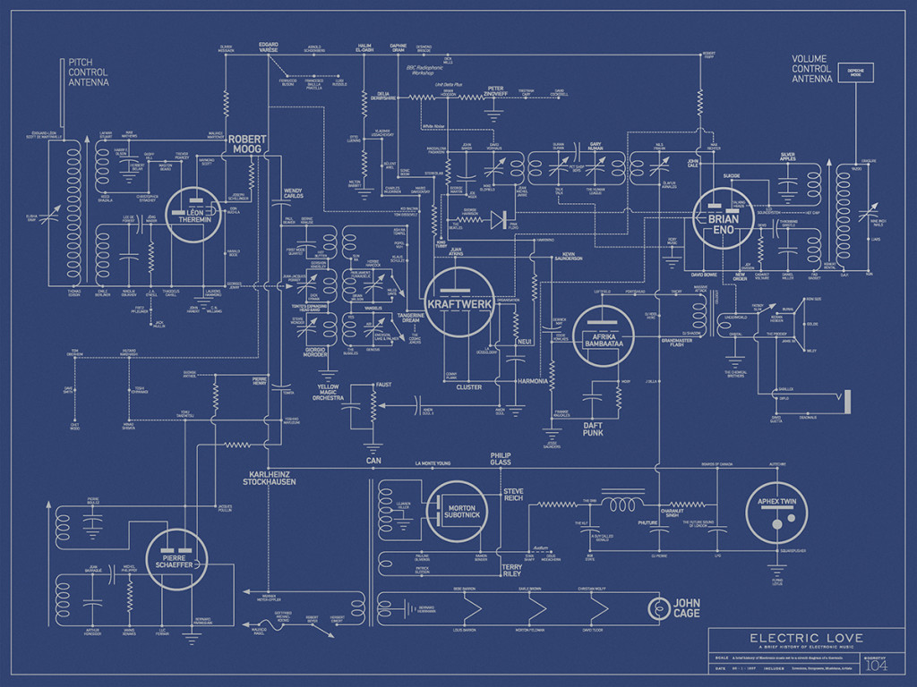 El mapa ha sido desarrollado por Dorothy, el estudio Londinense responsable también de la obra: «Alternative Love Blueprint – A History of Alternative Music» (Plano de amor Alternativo – Una historia de la música alternativa) y antes de ello otro mapa similar sobre la música electrónica.