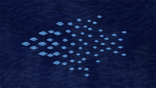 Como otros muchos animales, los peces se mantienen unidos en grupos, pero eso no es que sea únicamente para disfrutar de la compañía de los demás. Es un tema de supervivencia. Los bancos de peces exhiben complejos comportamientos de enjambre que les ayudan a escapar de depredadores hambrientos, mientras que un pez solito estaría perdido. De modo que, ¿qué pez brillante es el que está en cargo? De hecho, ninguno y todos. ¿Qué significa pues? Mientras que el banco de peces serpentea elegantemente, cambia y esquiva tiburones en lo que parece una coordinación deliberada, cada pez individual sigue dos reglas básicas que nada tienen que ver con el tiburón: la primera es mantenerse cerca, pero no demasiado, de tu vecino y la segunda, continúa nadando.
