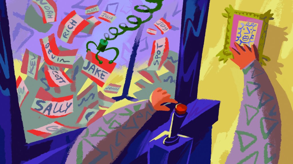 Funciona tal que así: Pongamos que vienes cargad@ del supermercado y necesitas ayuda rápida de algun@ de tus hij@s. Tu cerebro intenta recuperar rápidamente el nombre desde la carpeta familia, pero acabará sacando un nombre relacionado, menciona Neil Mulligan ; científico cognitivo de UNC Chapel Hill.