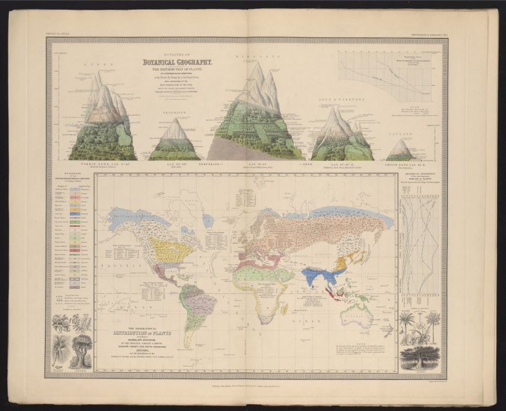 El colmen de este ejemplo de describir la naturaleza mediante la representación de las relaciones entre plantas, clima y geografía; añadiendo un matiz de comparativa a través de todo el mundo que exploró lo podemos observar en su diagrama NATURGEMALDE, en que, sirviéndose de la forma del pico más alto de Sur Amércia (el Chimborazo); Humboldt colocó las plantas en función de la altura y de de dónde se había encontrado con ellas, a la vez que comparaba mediante tablas a los lados, con otras observaciones que había llevado cabo en sus exploraciones y que había recolectado de muchos de los científicos y exploradores de su época con los que mantenía contacto continúo.