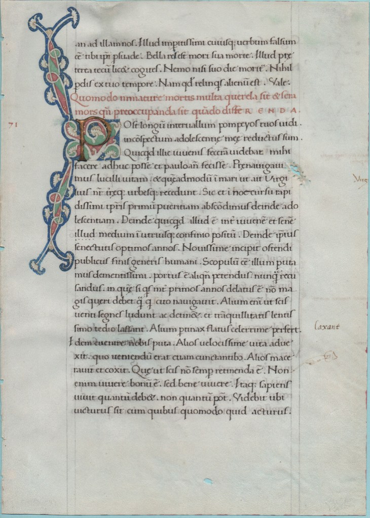 - El sabio es el único que escapa a las leyes del género humano, todos los siglos le sirven como a un dios: ¿se trata del pasado? Su recuerdo lo abraza. ¿Del presente? Lo utiliza. ¿Del futuro? Lo prevé. Así se prolonga su vida, al juntarse en uno solo todos los tiempos.