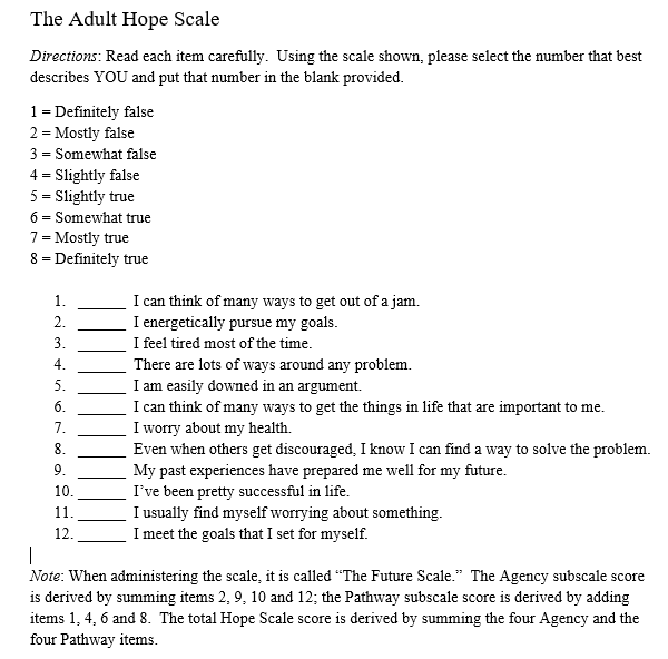 L@s científicos definen la esperanza como una materia importante en la psicología positiva, en referencia las expectativas orientadas a metas del individuo que incluyen tanto la agencia (el deseo de alcanzar metas) y los caminos (encontrar modos de alcanzarlas).