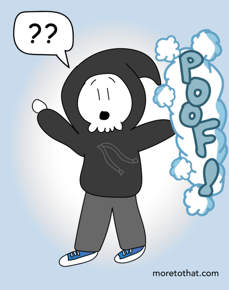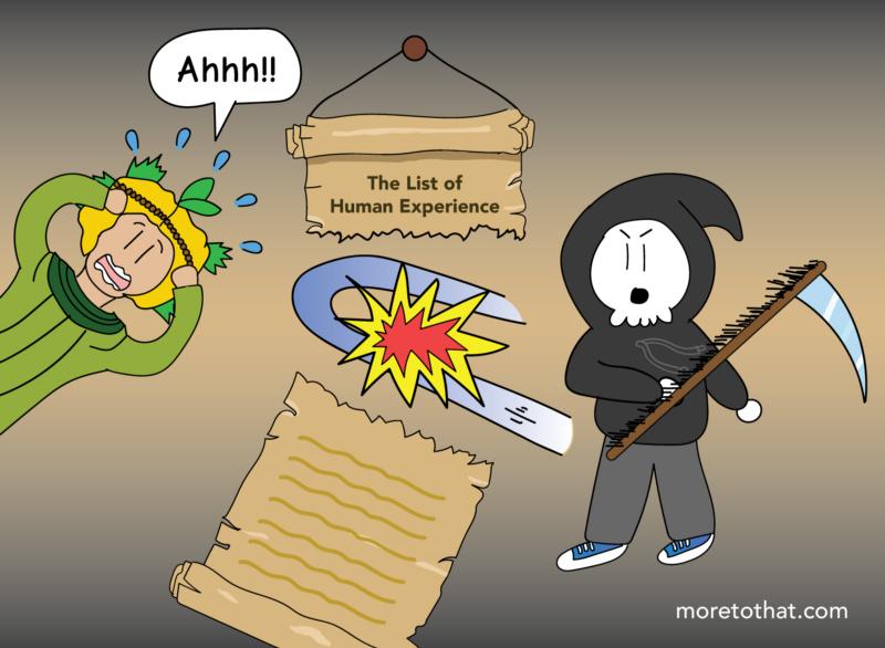 Dicho esto, mientras que la Muerte tiene una gran habilidad para disipar la ilusión de la autoidentidad, no todo es tan bonito. Su goma de borrar tiene el poder de borrar aquello que realmente debe ser borrado, pero otras veces toca ítems que no querríamos que los tocara ni loc@s.