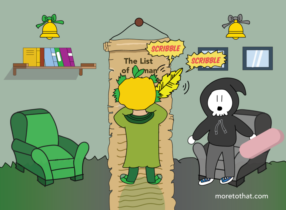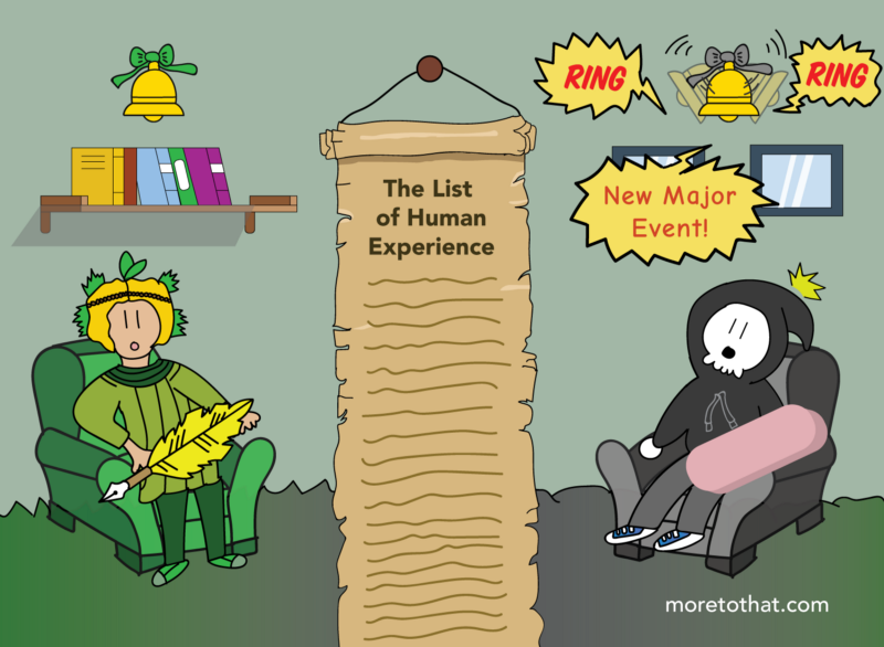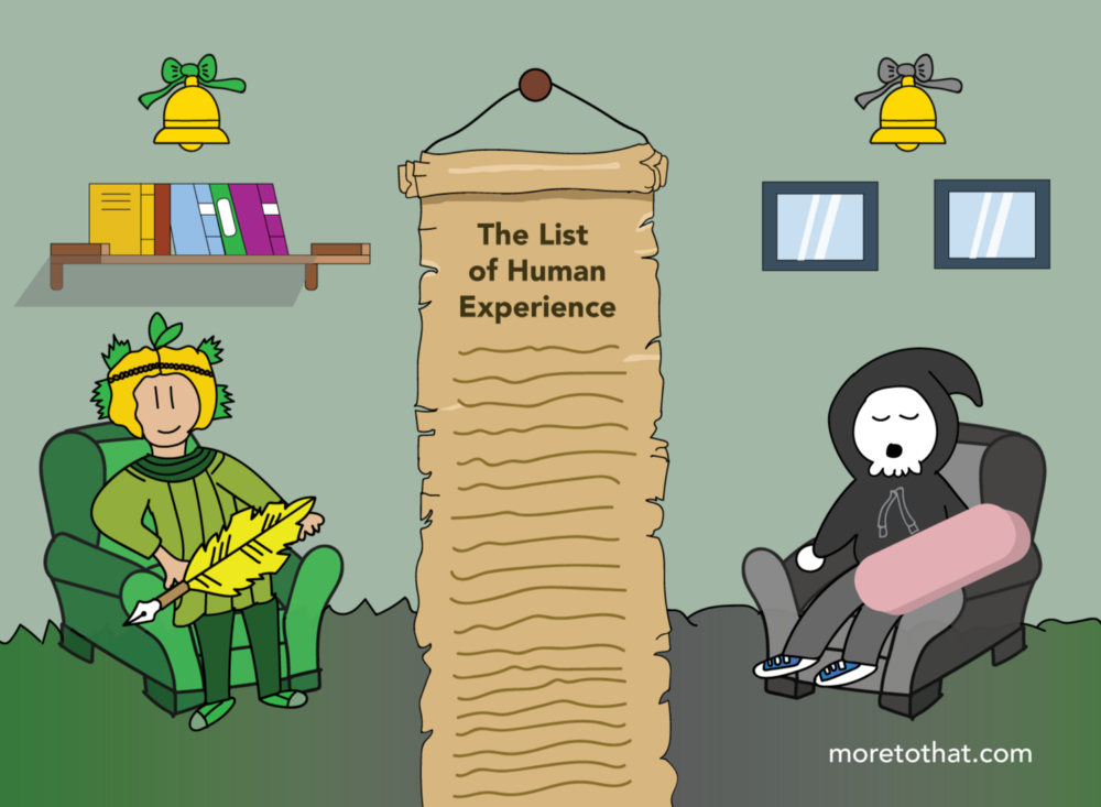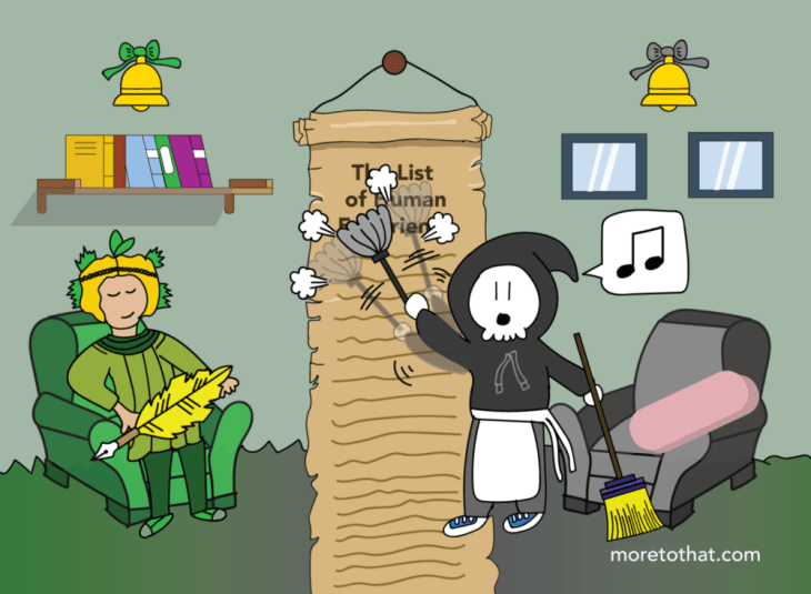 Muchas de las decisiones que tomamos a diario son un esfuerzo para mantener a la Vida concentrada en hacer crecer nuestra lista y para mantener a la Muerte desocupada, sin que haga ninguna acción sobre ella.
