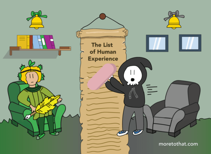 Tendemos a pensar que la muerte es un evento de eliminar la vidas más que un evento de editarla. En lugar de concentrarnos en su propósito como herramienta substractiva necesaria para el crecimiento, la vemos como el momento definitivo en que todo termina.