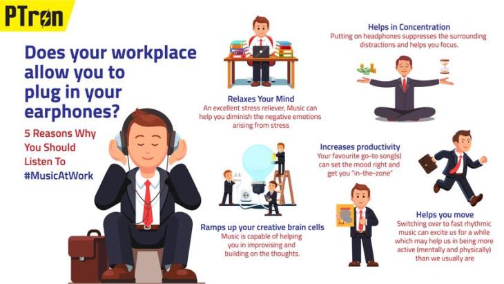 En esta infografía podremos aprender 5 razones por las que deberíamos escuchar música en el trabajo.