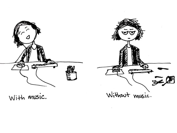 Piedmont continúa: «Escuchar música con auriculares puede ayudar a que la gente se mantenga concentrada y sientan que tienen su propio espacio en una oficina diáfana […] Hoy en día, es realmente fácil tener acceso a la música (normalmente está justo ahí, en tu teléfono o en tu ordenador y es gratis) y ese fácil acceso también puede ser la razón por la que vemos, cada vez más, a más personas escuchar música durante el día».