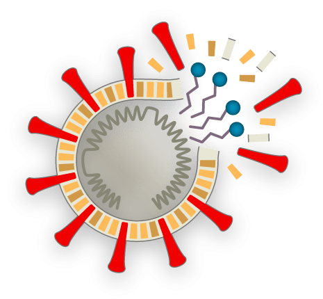 El virus infecta la célula al fusionar su membrana grasosa con la membrana de la célula. Una vez dentro el coronavirus libera un fragmento de material genético llamado ácido ribonucleico (ARN).