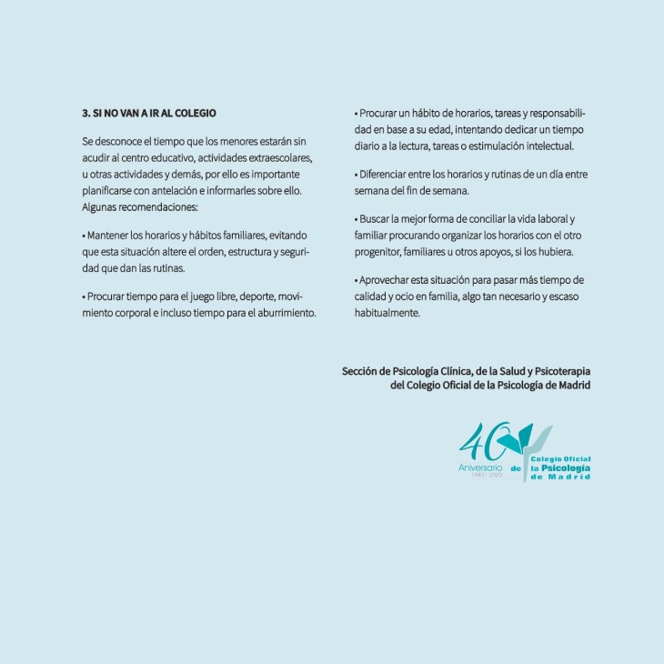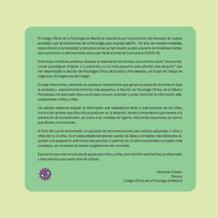 No dejéis de echar un vistazo a las imágenes finales en que se comenta cómo informar y proteger a nuestr@s hij@s frente a un virus. Además de otros recursos del Colegio de la Psicológía, los enlaces de los cuales os dejos aquí abajo:
