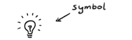 La imagen de la bombilla funciona en un nivel puramente simbólico, tan sólo reemplaza la palabra «idea». Esta imagen es un elemento doméstico que no contiene ningún pensamiento original sobre qué es una idea. Símbolos como este funcionan bien como reemplazos internacionales para palabras o iconos para indicar un interruptor (por ejemplo), no transmiten ningún valor nutricional como ilustraciones, están vacías.