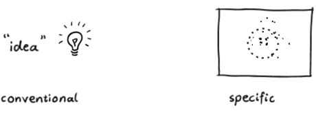 Y ese es el truco: el dibujo tiene que ser poco convencional para apoyar las palabras convencionales. Tenemos que asegurarnos que no usamos «palabras disfrazadas». Tomemos por ejemplo la ilustración más común para una «idea», la que es «válida» en todo el mundo: la bombilla.