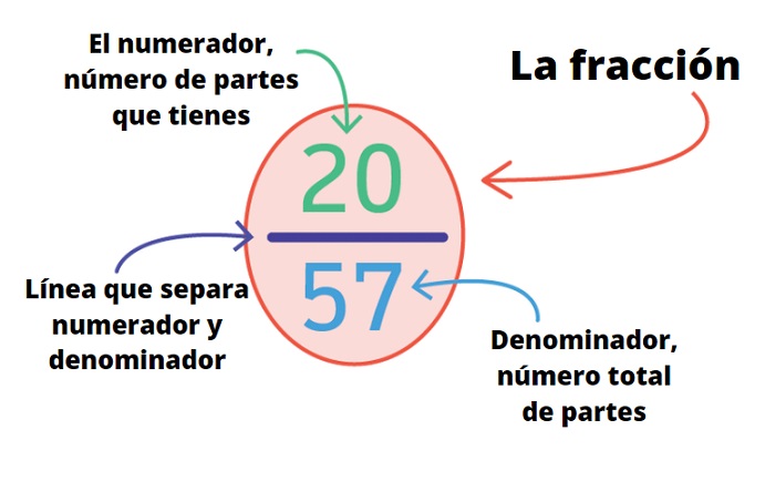 El número sobre la línea de una fracción que indica cuántas de las partes del denominador se cogen, por ejemplo, en el caso de arriba, 20 in 29/57,