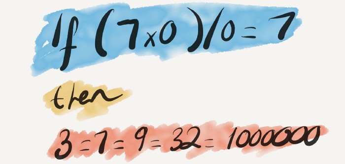 Como hemos visto antes, sabemos que 7×0=0. Para deshacer la multiplicación, podríamos afirmar que (7×0)/0 nos volvería a dar 7. ¿Por qué?