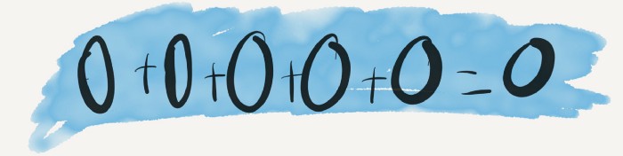 No importa cuántos grupos de ceros tengamos, ya que nunca sumaran nada: 0+0+0+0+0+0+0+0+0+0=0