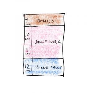 Una programación «bottom-heavy» sería todo lo contrario. Sería colocar la mayoría del trabajo, el más importante y el más difícil al final de tu día. Esto es una receta ideal para la procrastinación a medida que te quemas haciendo tareas que no tienen tanta importancia e impacto.