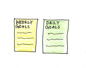 Yo mantengo una lista de tareas semanales y diarias. Ambas listas me ayudan a partir el número infinito de tareas que tengo en cosas más manejables.