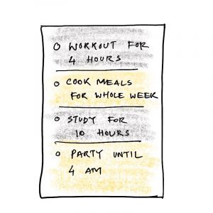 Cuando establezcas tus metas diarias y semanales, presta atención a que sean cosas que puedas manejar. Si no crees que puedas hacerlo todo hoy, no vas a trabajar tan intensamente. Hacer una lista más corta y acabar antes es mejor.